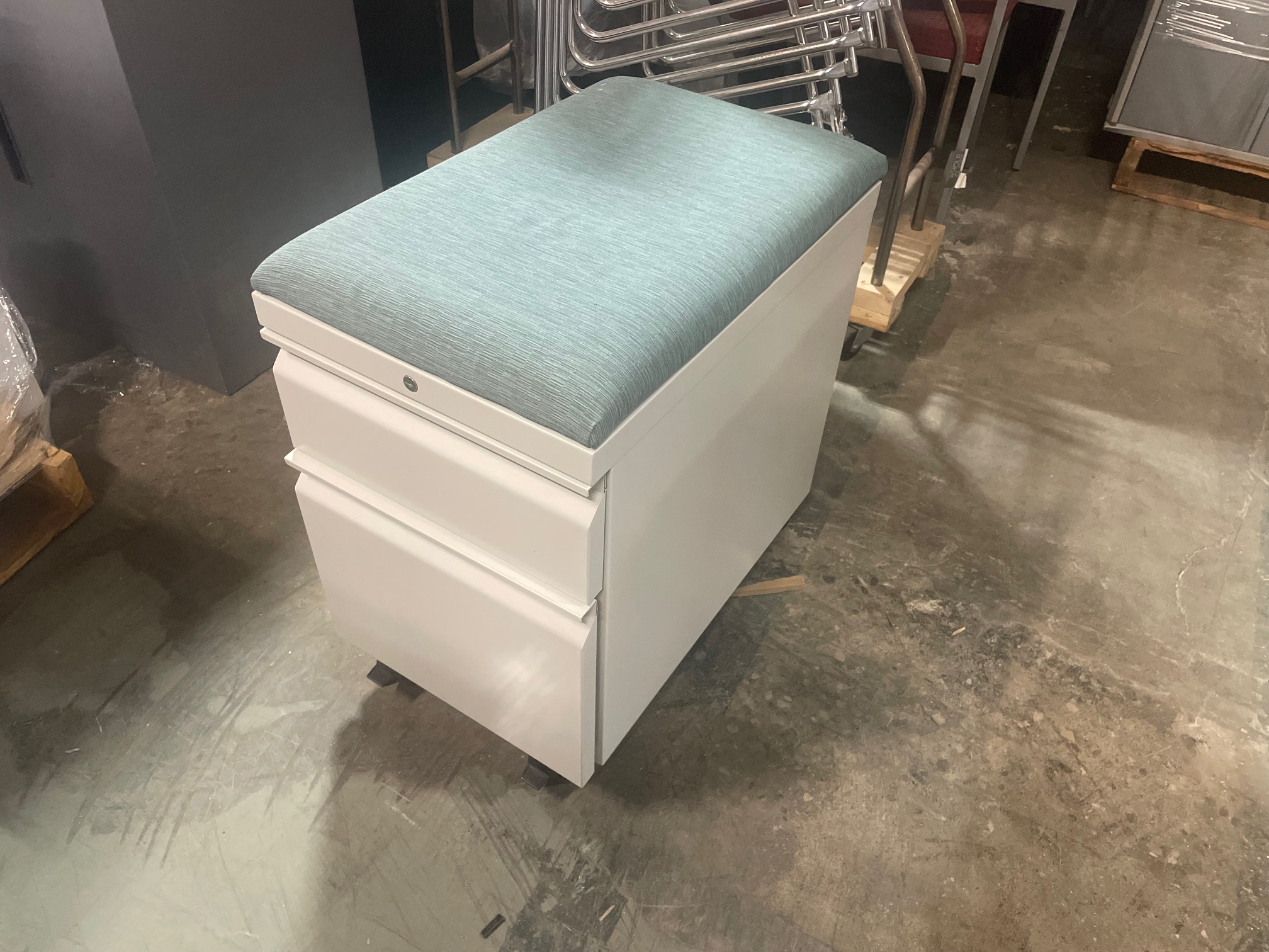 Steelcase Mobile pedestal with pull bar handle and Cushion ( White / Green )